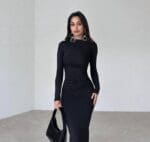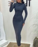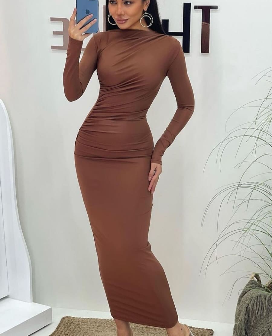 Turn heads with this elegant long-sleeve ruched bodycon midi dress. Designed with a flattering slim fit and soft stretch fabric, it highlights your curves while keeping you comfortable all day. Perfect for dinners, parties, or special occasions — available in 6 stunning colors to match your style.