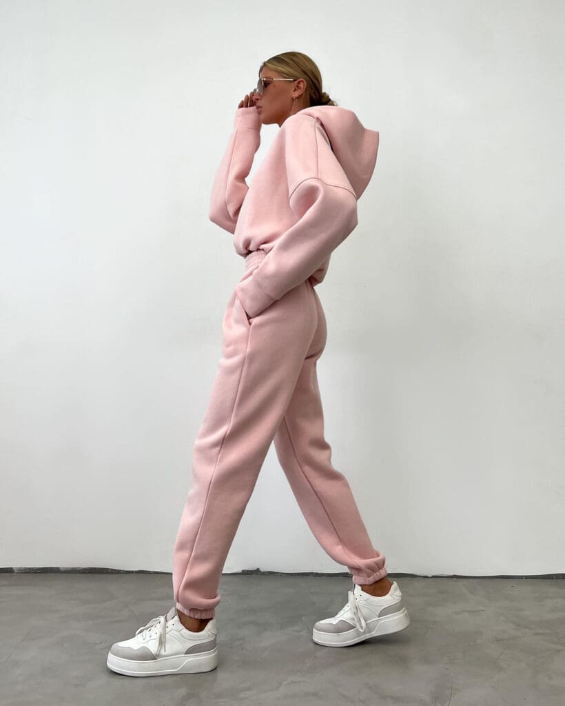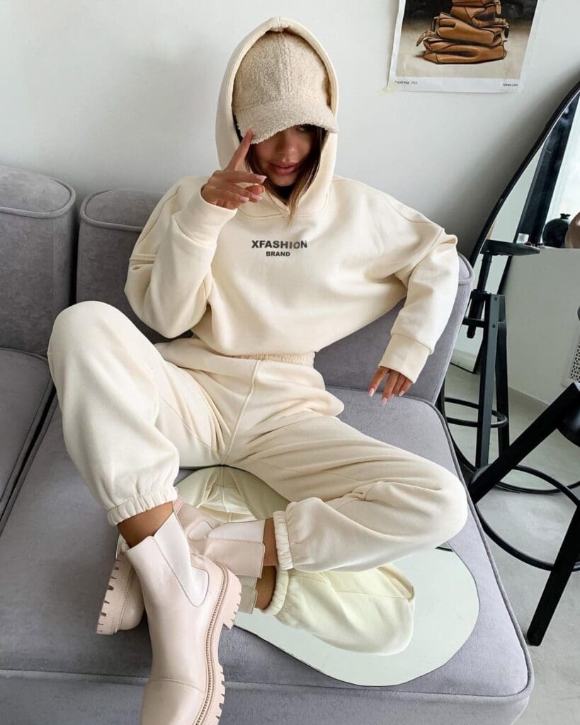 It comes with a soft hoodie and relaxed pants, perfect for casual days.